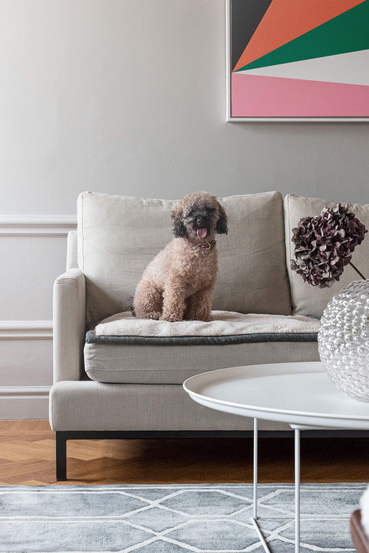Engineered to stay in place, even when your dog moves around, the bottom fabric is crafted from 70% recycled PET bottles. Designed in Sweden and meticulously made in Italy, this blanket incorporates leather details crafted from Tuscan vegetable-tanned leather, adding a touch of luxury to its functional design.