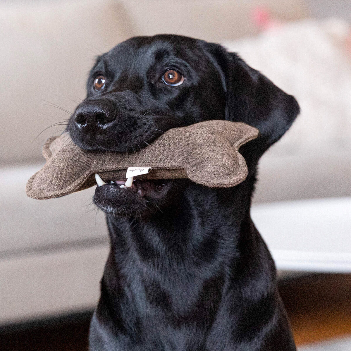 Denjo Dogs Buddy Bone is a gentle and lightweight dog toy designed in the shape of a dog bone, crafted from the same fabric used in Teddy Lounge.