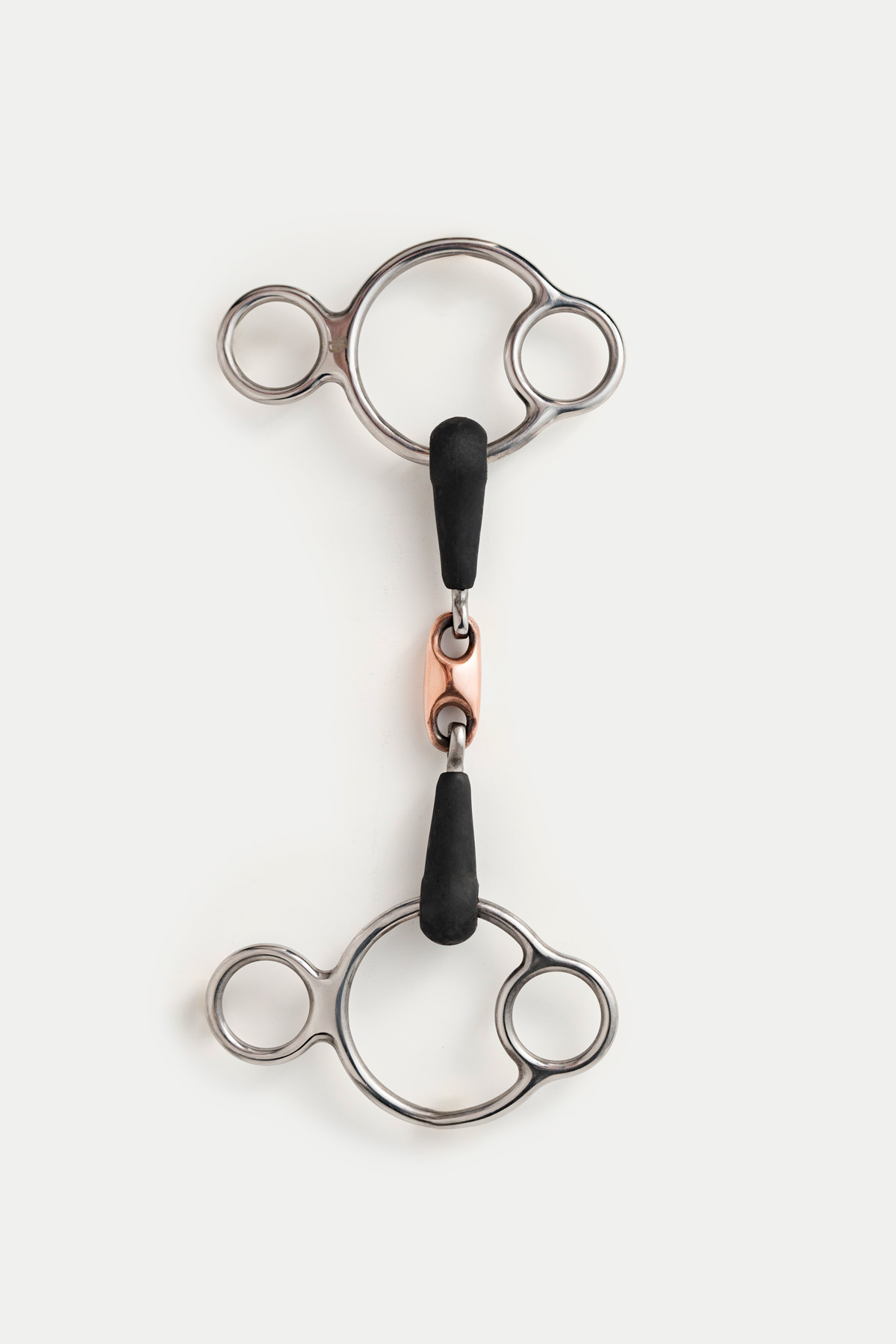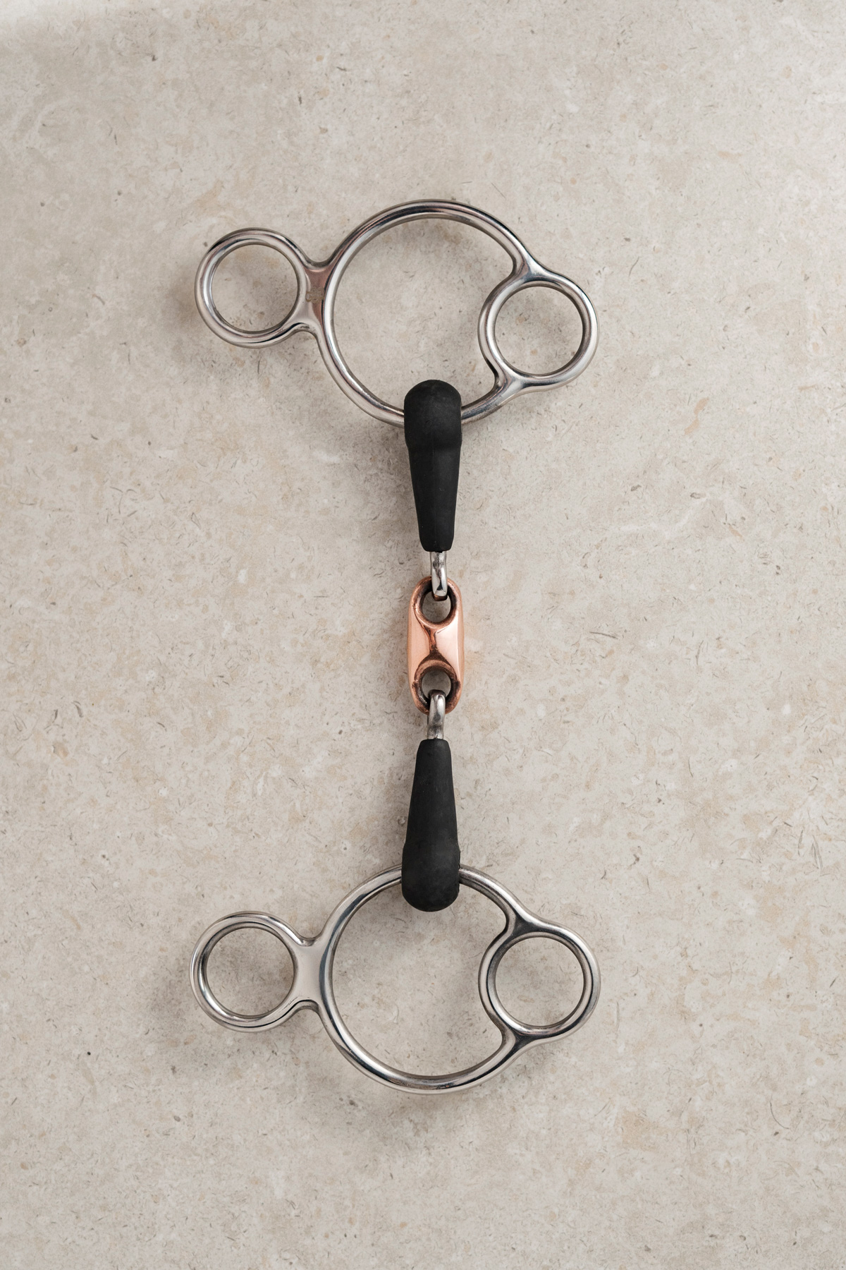 The three-part design ensures a gentle and steady connection with your horse’s mouth. The central lozenge reduces the nutcracker effect of a single-jointed bit whilst also distributing pressure evenly over the tongue and bars of the mouth. This promotes a soft contact, enabling clear aids through the reins. The copper lozenge creates a positive effect and acceptance of the bit. Copper is a warm and soft metal, emitting a sweet and pleasant taste. This creates a warming sensation which encourages salivation and mouthing on the bit.