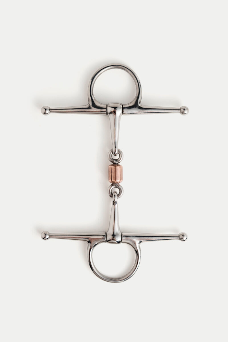 The three-part design ensures a gentle and steady connection with your horse’s mouth. It features a central copper roller, strategically placed to reduce the nutcracker effect often associated with single-jointed bits whilst also distributing pressure evenly over the tongue and bars of the mouth. This roller not only encourages a soft and gentle contact but also emits a sweet and pleasant taste that promotes salivation and mouthing. Copper is a warm and soft metal, making the copper roller very soft and comfortable on the horse’s tongue. Combined with the pleasant taste, the copper roller leads to higher acceptance of the bit by your horse.