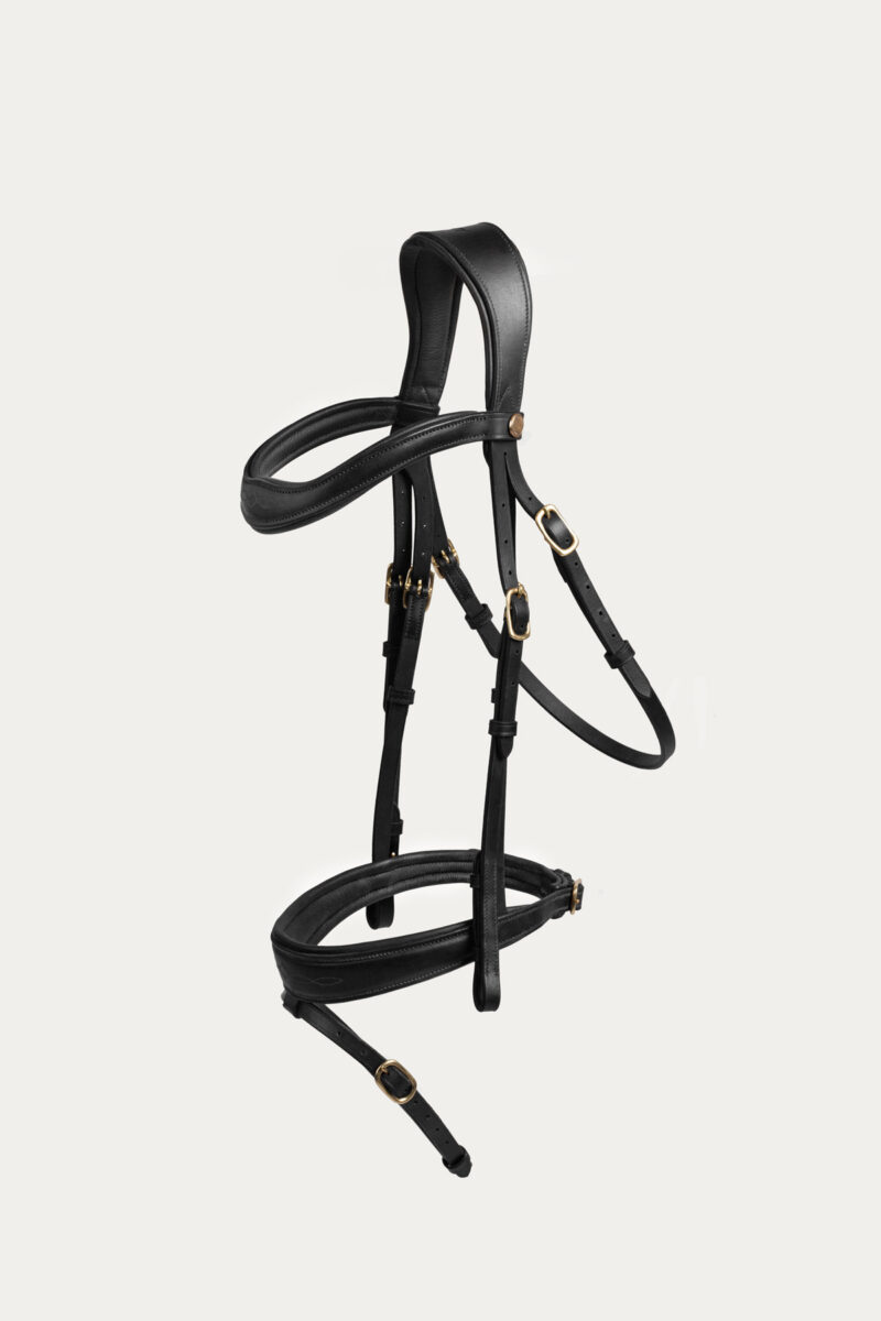 Adding a touch of timeless elegance, the bridle features brass buckles that elevate its design. Crafted entirely from 100% quality leather, it ensures both quality and durability, promising a lasting connection with your horse. The set includes woven reins.