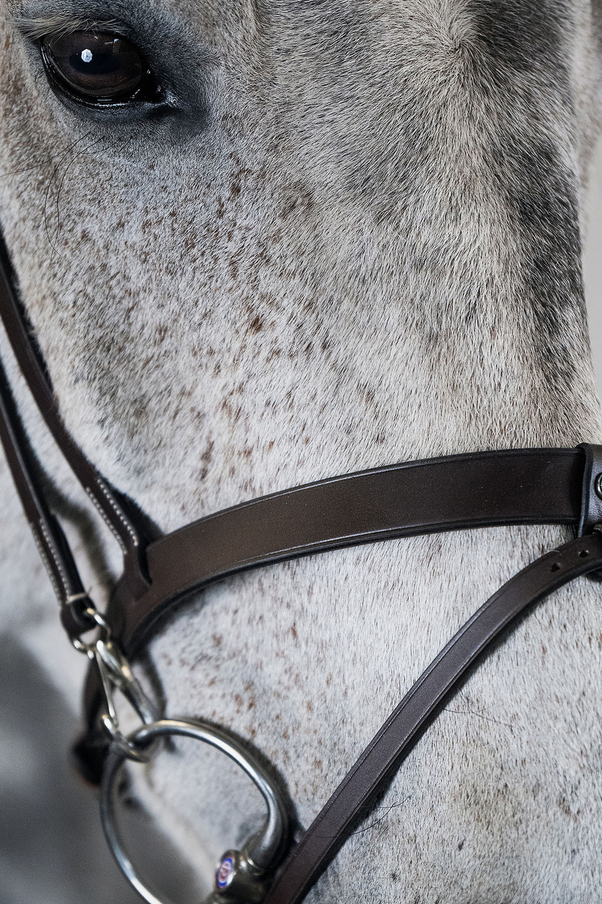 • Noseband: Crafted from high-quality Italian leather, the noseband fastens smoothly with a covered buckle to prevent direct pressure on the jaw. The removable Aachen strap attachment allows you to switch between two versions of the noseband, making it ideal for riders who work with multiple horses or only require the Aachen strap occasionally.