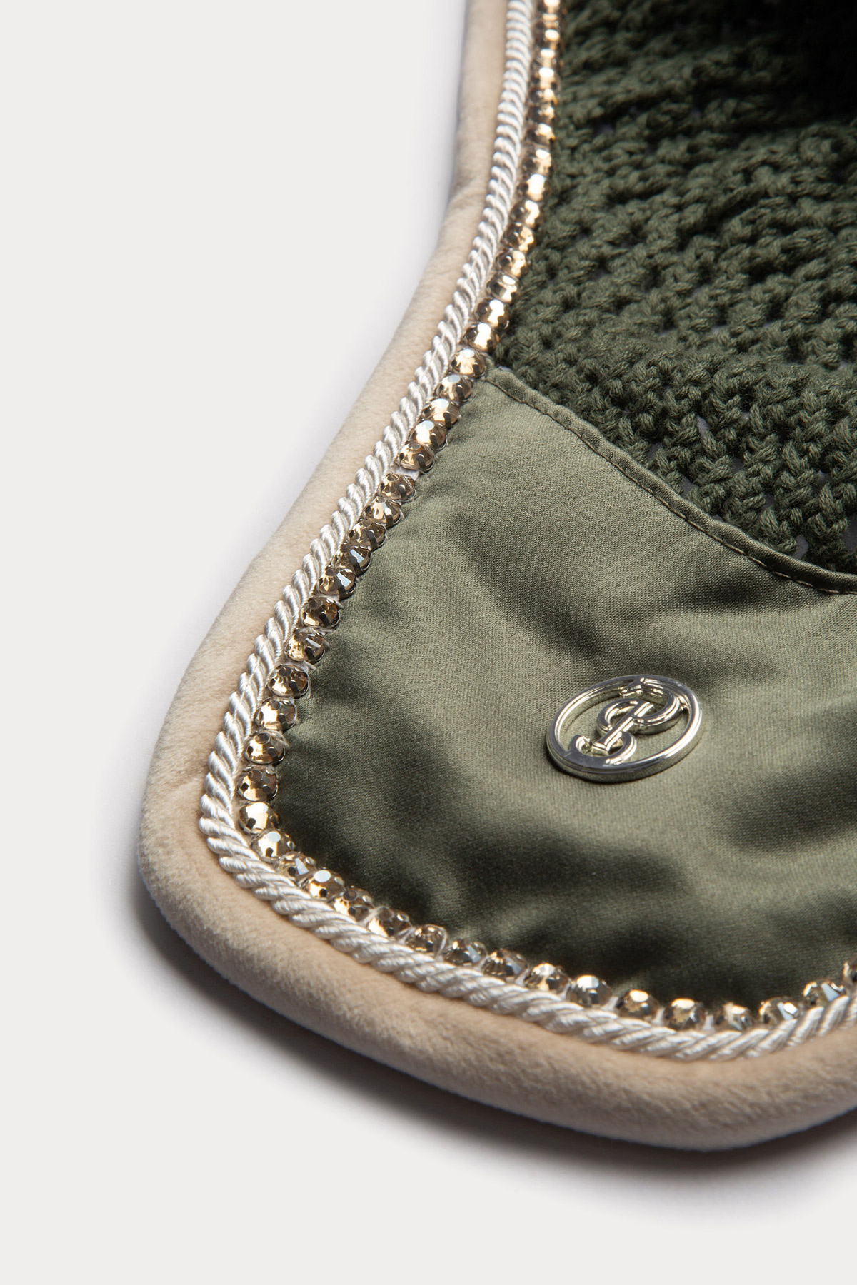 Created to match the rest of the Vintage Monogram Collection, this bonnet pairs beautifully with the coordinating saddle pad and polos—bringing harmony and style to your tack setup.