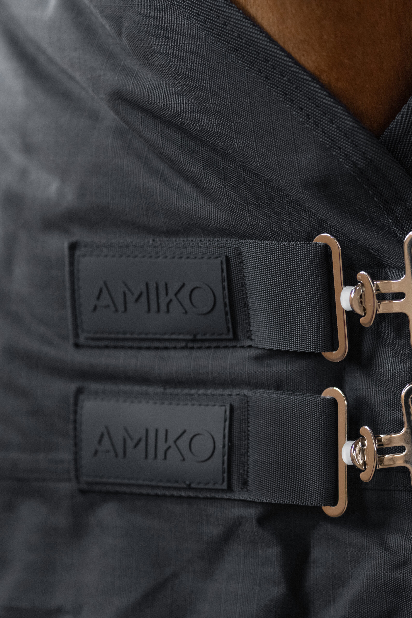 Designed with your horse’s comfort in mind, the Amiko rug boasts an anatomical shape that naturally aligns with your horse’s body. It stays in place, even after rolling, thanks to a secure hook and loop closure system, complete with two front closures and three cross surcingles for a snug fit. Includes attachments to easily add a neckpiece.