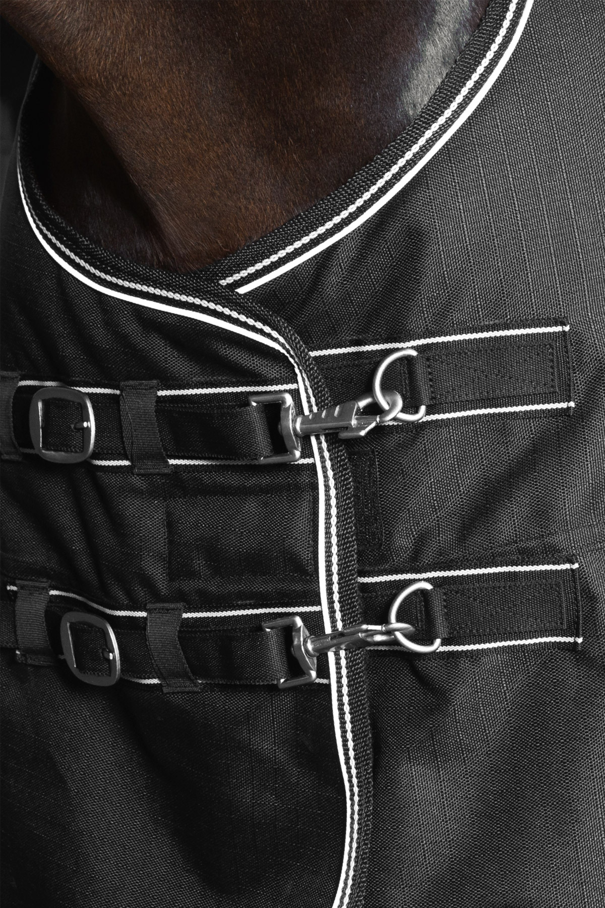 The perfect horse blanket for unpredictable weather and rainy days! “Brianna” is a high-quality rain blanket with all the extras. Durable, waterproof, and highly breathable (3000/3000), it features a lightweight filling, making it versatile for both cooler and warmer temperatures. Its spacious fit allows for an extra blanket underneath during colder days, providing added warmth. The high shoulder gussets ensure excellent mobility for your horse.