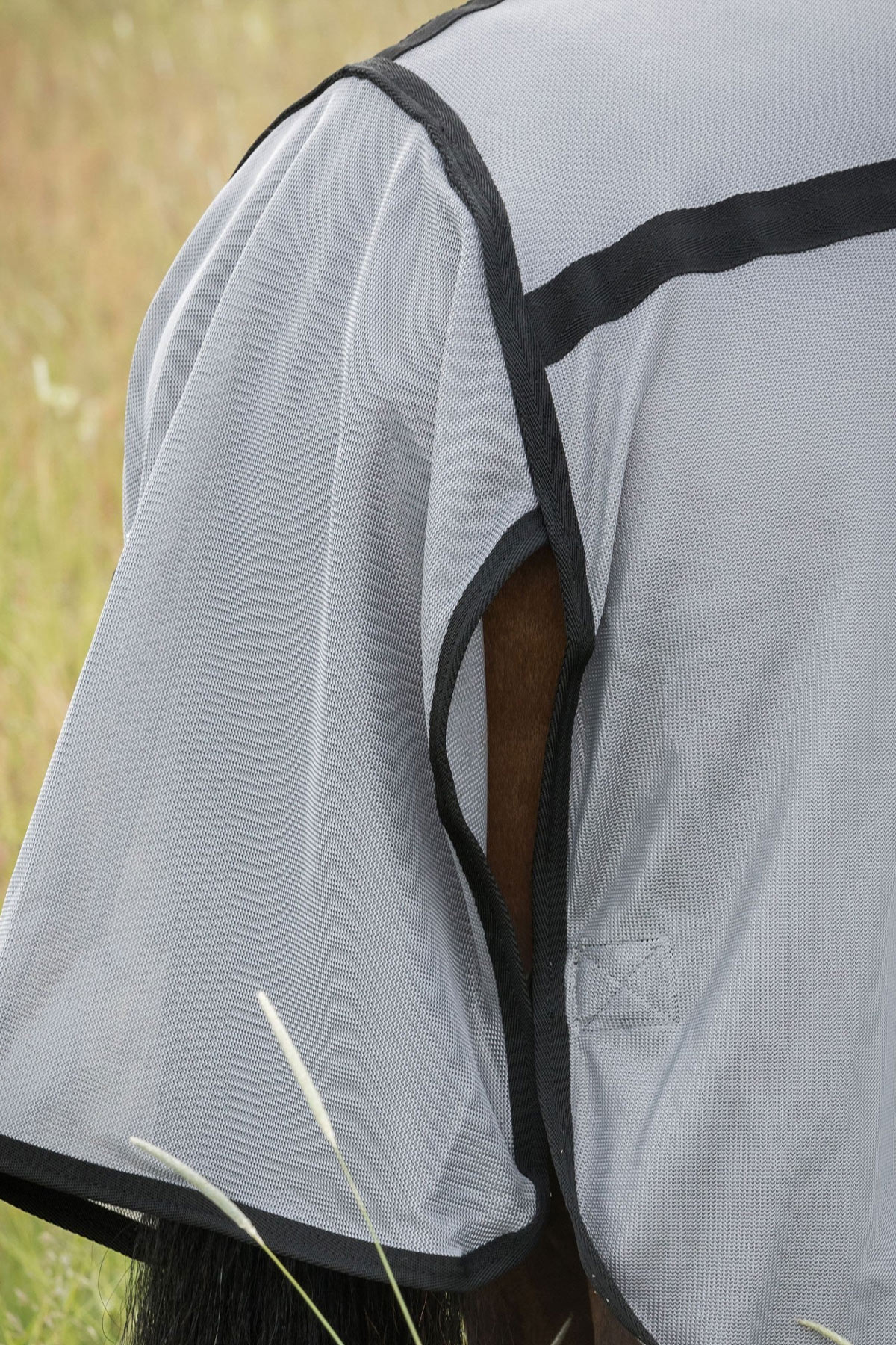 This lightweight and breathable sheet offers effective shielding against flies and UV rays, making it ideal for turnout and stable use. The absence of a neck piece allows for greater freedom of movement, while the adjustable belly straps and tail flap ensure a secure fit. Its soft lining reduces friction, minimizing the risk of chafing.