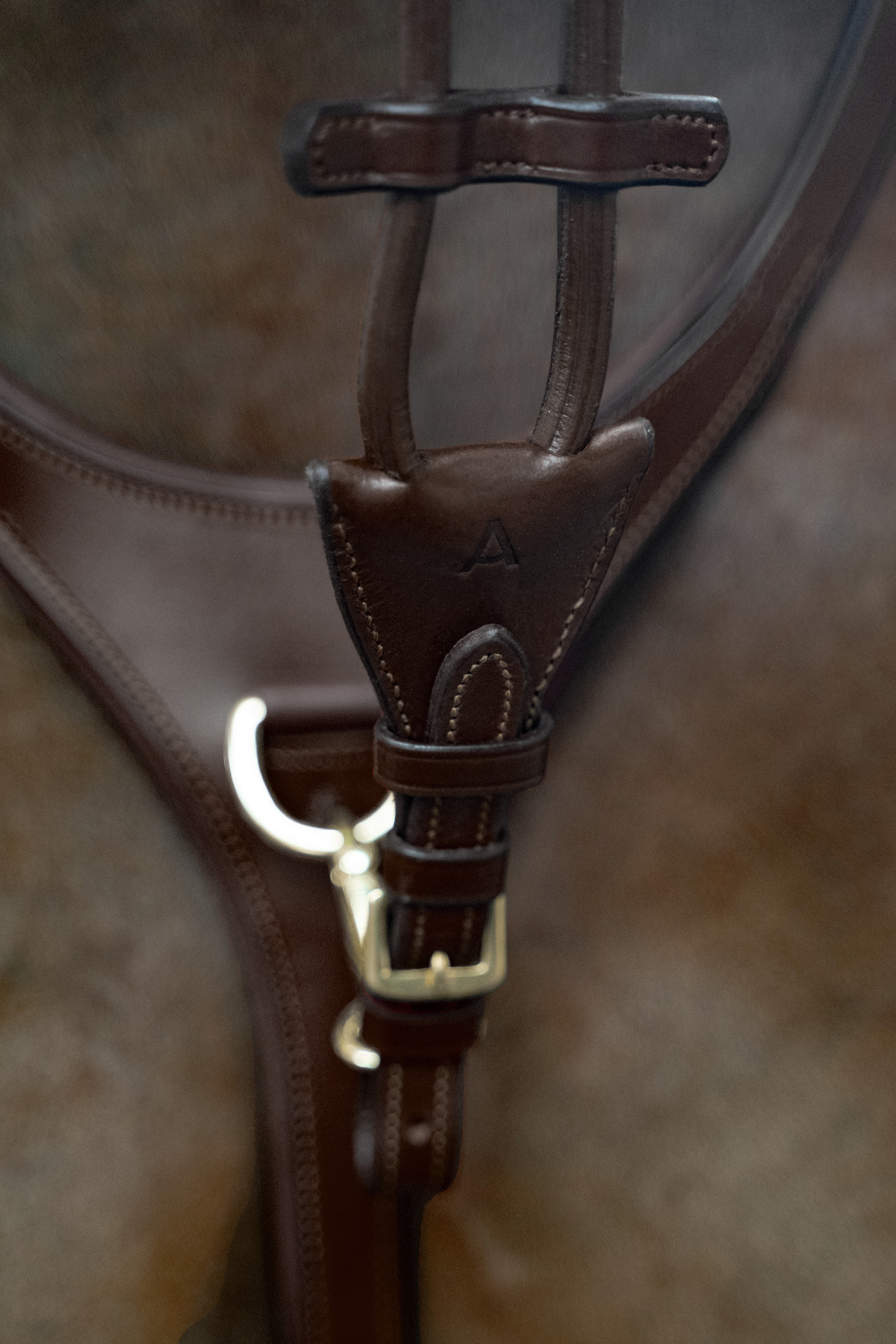 Fully Adjustable Fork Martingale Attachment—crafted for precision and control. Made from 100% premium leather, this attachment is built to last and helping you maintain better control over your horse’s head movement.