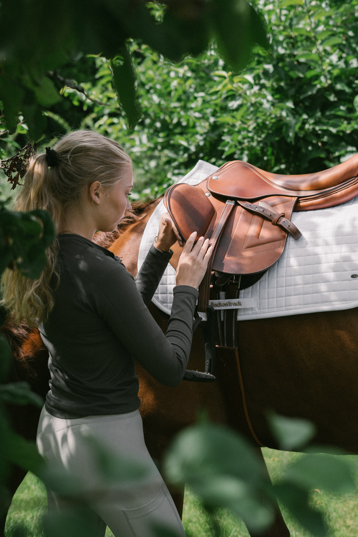 - Fixed loop for the saddle girth, for a close contact with the legs.