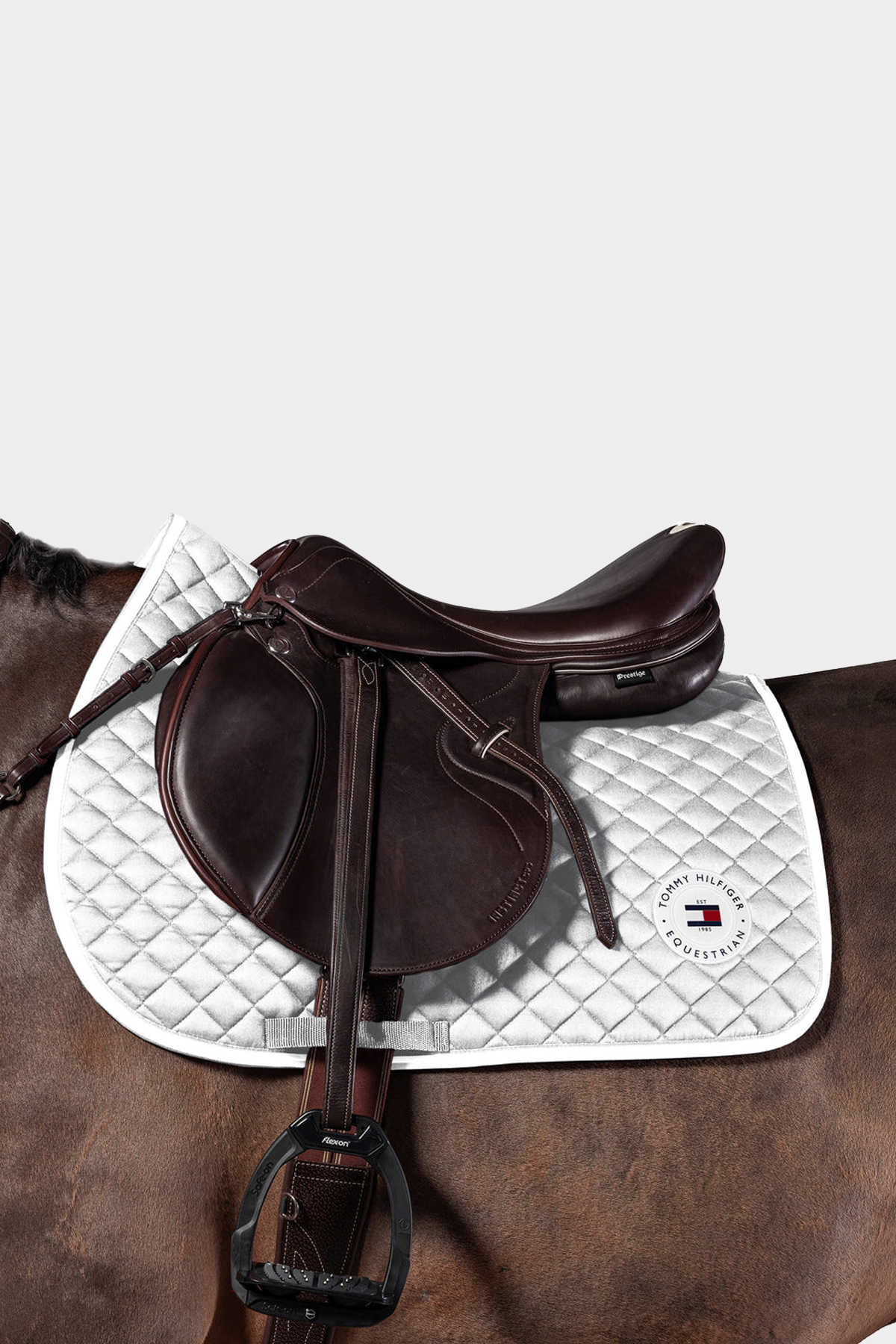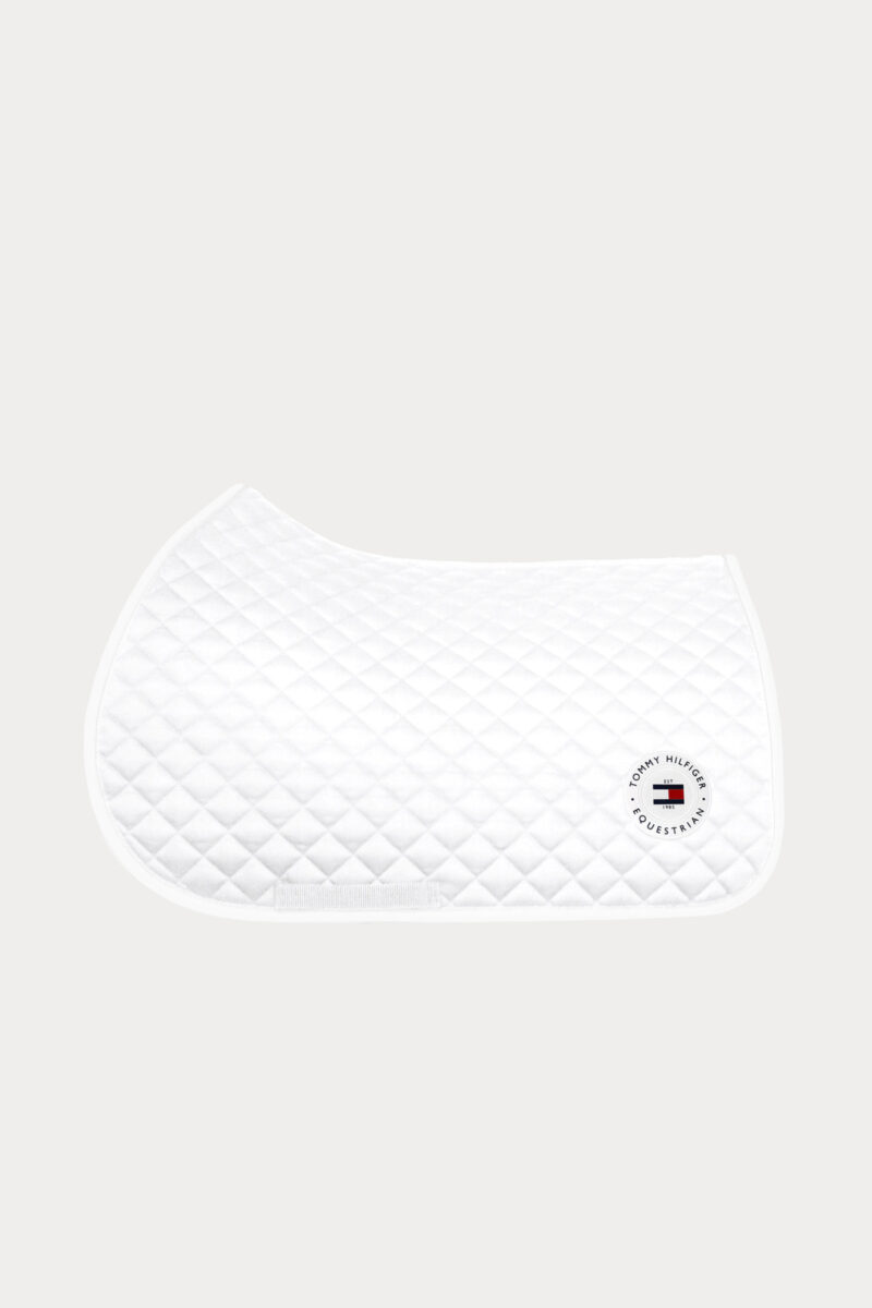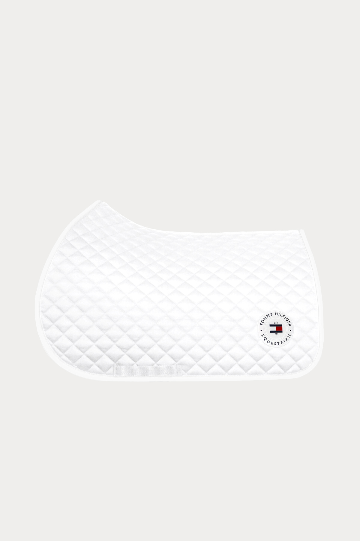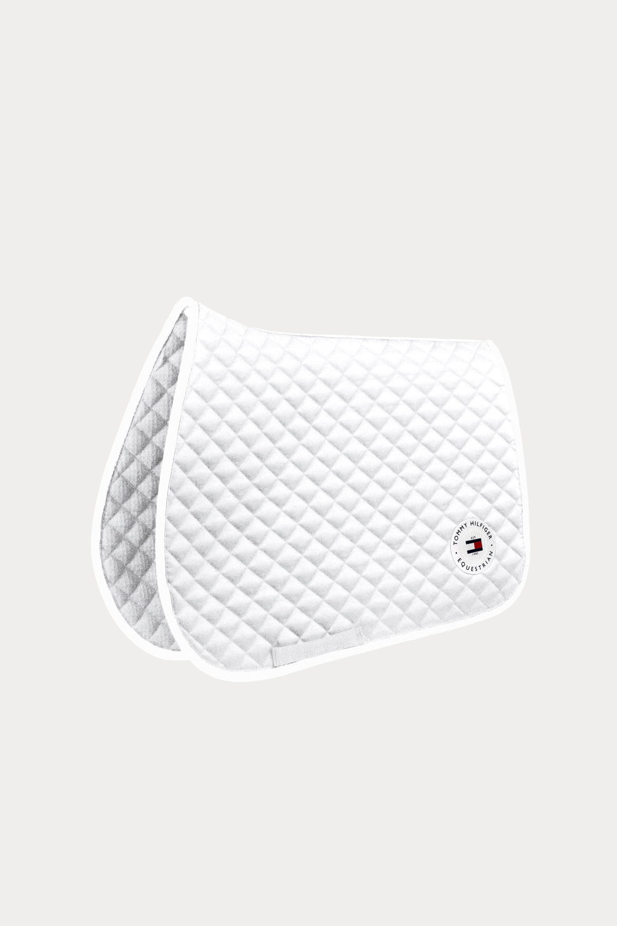 Shape-retaining, well-fitting GP/Jumping cut saddle pad featuring a classic small quilting design, accented with the iconic TH Global Stripe in signature Tommy colors. Includes a round silicone logo patch on the side for added style. The interior is crafted from 100% natural fiber in a breathable waffle structure for optimal comfort.