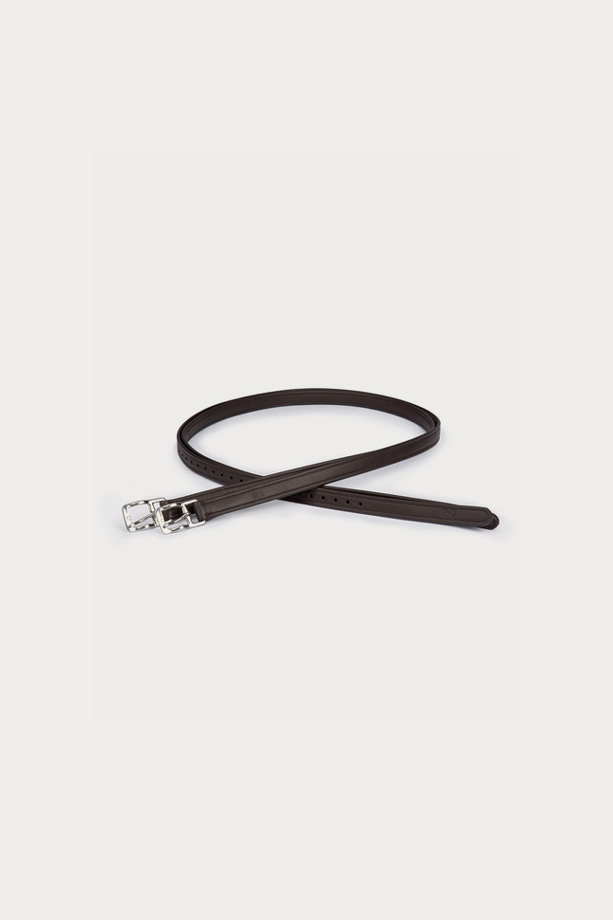 Finished with a metal buckle made of stainless steel, the stirrups feature a rounded shape that lies flat against the saddle, offering a sleek and polished look. The shiny silver finish adds a touch of elegance, while the embossed PS logo at the top serves as a subtle mark of quality. Crafted with attention to detail, these stirrup leathers blend functionality with style, making them an ideal choice for professional riders who demand the best.