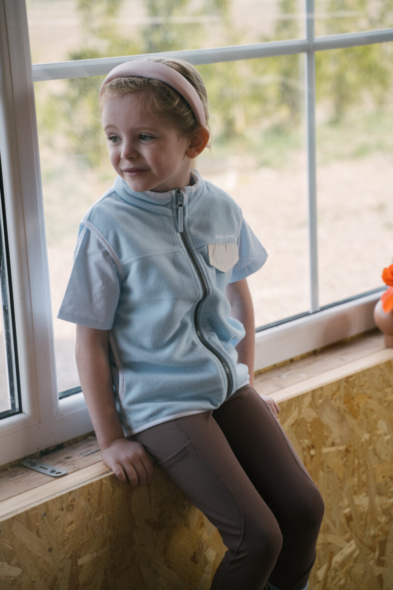 The Rodeo Rookie Windsor Fleece Vest is the perfect combination of warmth, comfort, and style for the youngest equestrians. Made from soft fleece material, this vest offers a cozy fit that keeps your child comfortable during long hours in the stable, outdoor explorations, or simply relaxing at home. Featuring handy side pockets for small essentials and a sweet detail on the left side, it’s as practical as it is adorable. The full-zip design allows for easy wear, while the snug fleece provides warmth without compromising on breathability.
