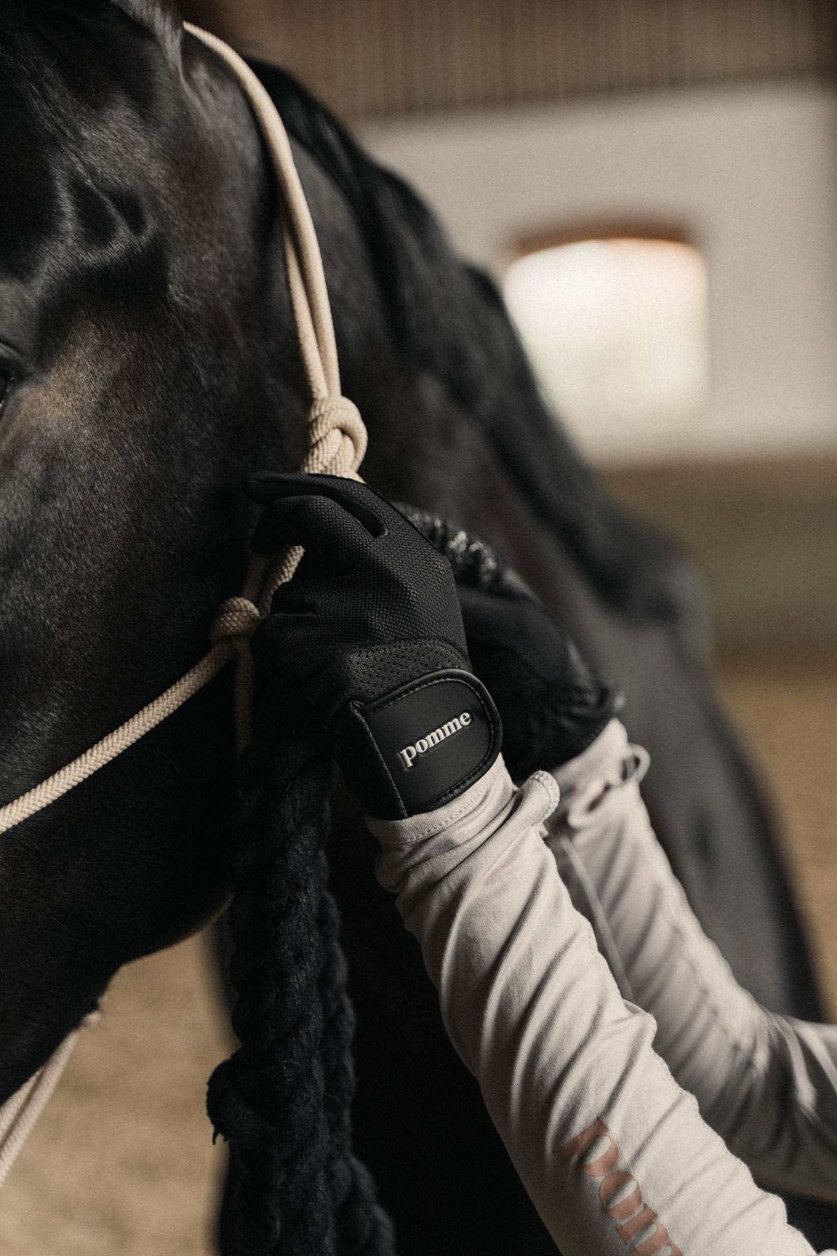 Elevate your riding experience with the Pomme Hailey Black Riding Gloves—designed for ultimate comfort and flexibility in the saddle. These gloves offer a functional, durable design that supports your natural movements, allowing you to focus on your riding performance with ease. Made from high-quality, 4-way stretch fabric, they provide a close-contact feel, ensuring full control and a perfect fit.