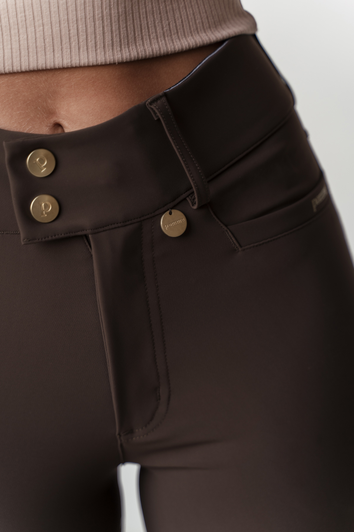 The measurements are given in CM. The blond model in the images is 166 cm and uses x-small. Her measurements are: Waist circumference - 65 cm, hip circumference - 94 cm, inseam length - 70 cm.