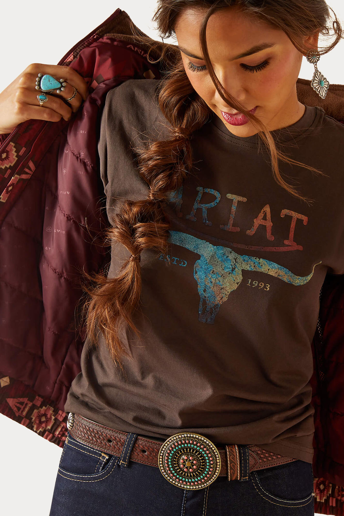 Stay warm and stylish with the Ariat Western Insulated Stable Jacket. Designed for the modern equestrian, this jacket features wind- and water-resistant construction, ensuring you’re prepared for unpredictable weather. The breathable fabric allows for comfortable movement, while the 120g Recycled Cool Climate Insulation™ provides lightweight warmth without bulk. Perfect for chilly mornings at the barn or casual outings, the Alamo Print adds a touch of western flair to your wardrobe. Made from recycled materials, this jacket not only keeps you cozy but also supports sustainable practices.