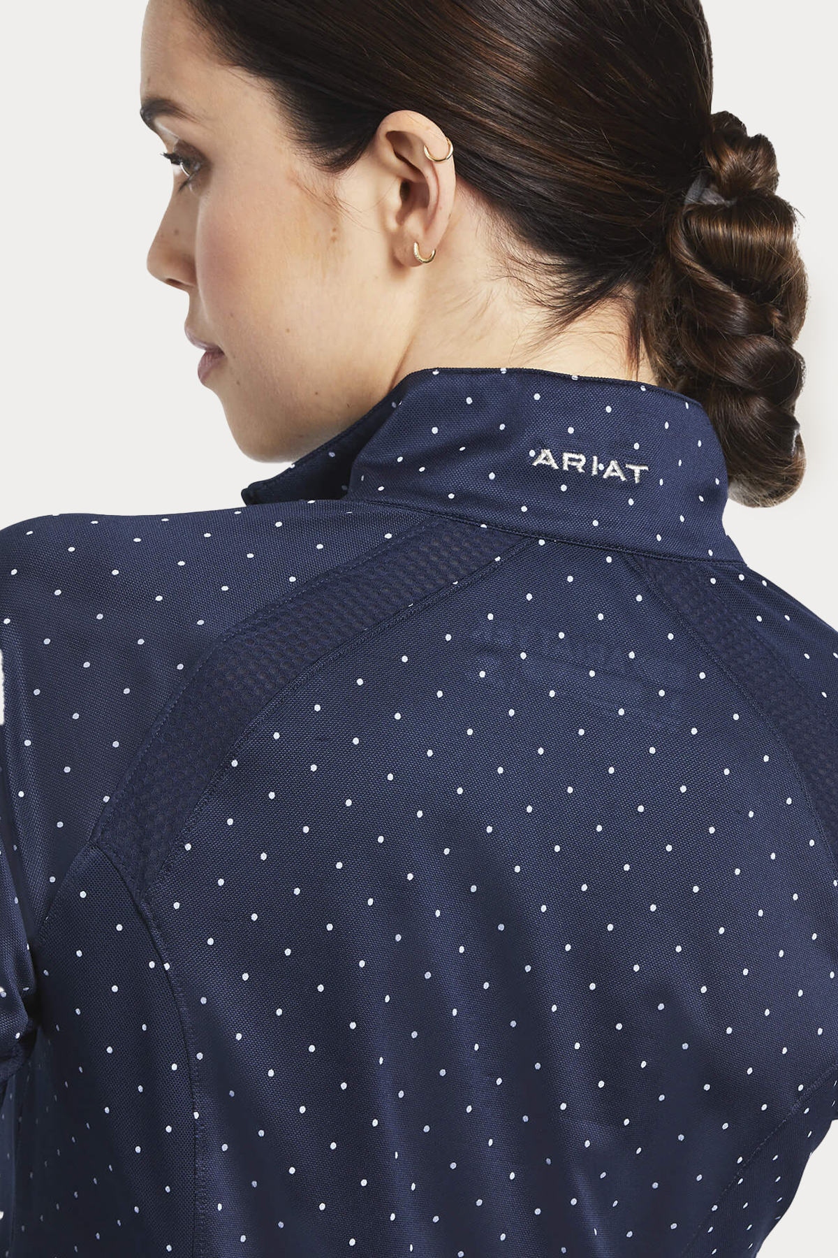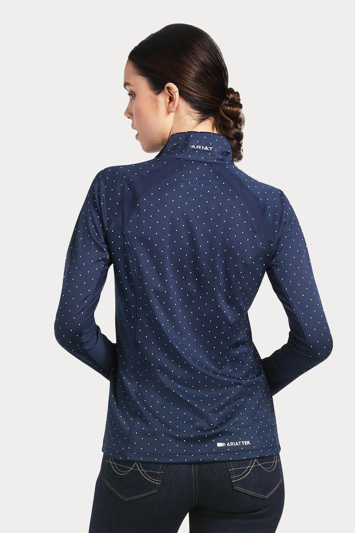 The Ariat Sunstopper 2.0 Show Shirt in Navy Dot is the perfect blend of style and performance, now featuring updated design details for an even more flattering fit. With its raglan-cut sleeves and breathable mesh panels, this shirt keeps you comfortable and cool, even when the competition heats up.