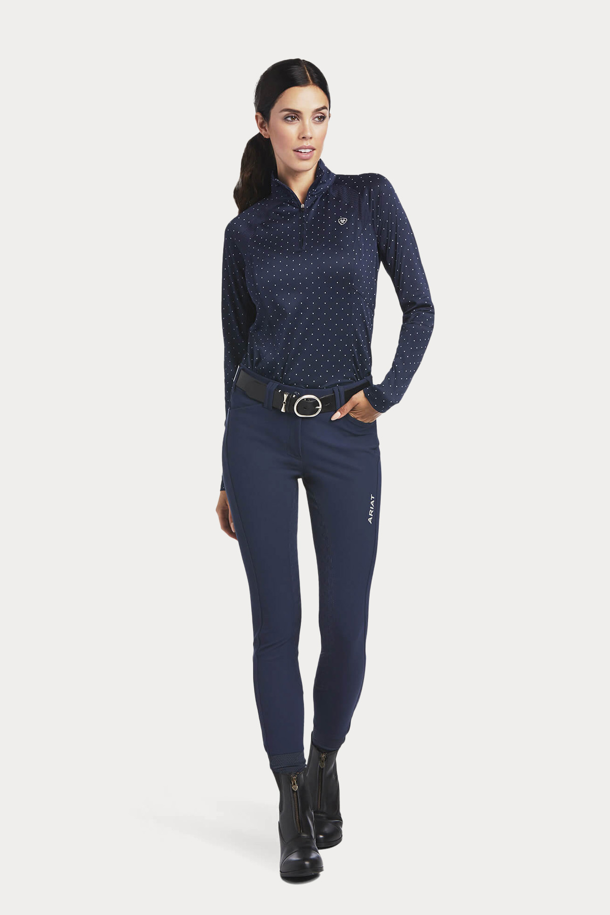 Equipped with AriatTEK® Heat Series technology, this lightweight shirt ensures you stay cool and dry, while the Sun Protection Fabric™ offers UPF 45 to shield you from harmful UV rays. The stand collar with 1/4 zip styling adds a touch of sleek sophistication, making it a must-have for your riding wardrobe.