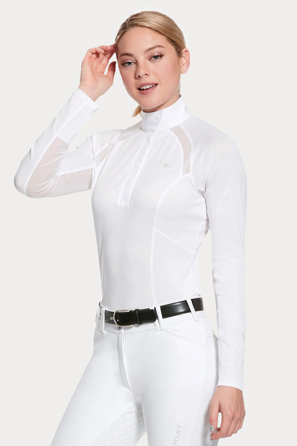 The Ariat Sunstopper 2.0 Show Shirt in White is the perfect blend of style and performance, now featuring updated design details for an even more flattering fit. With its raglan-cut sleeves and breathable mesh panels, this shirt keeps you comfortable and cool, even when the competition heats up.