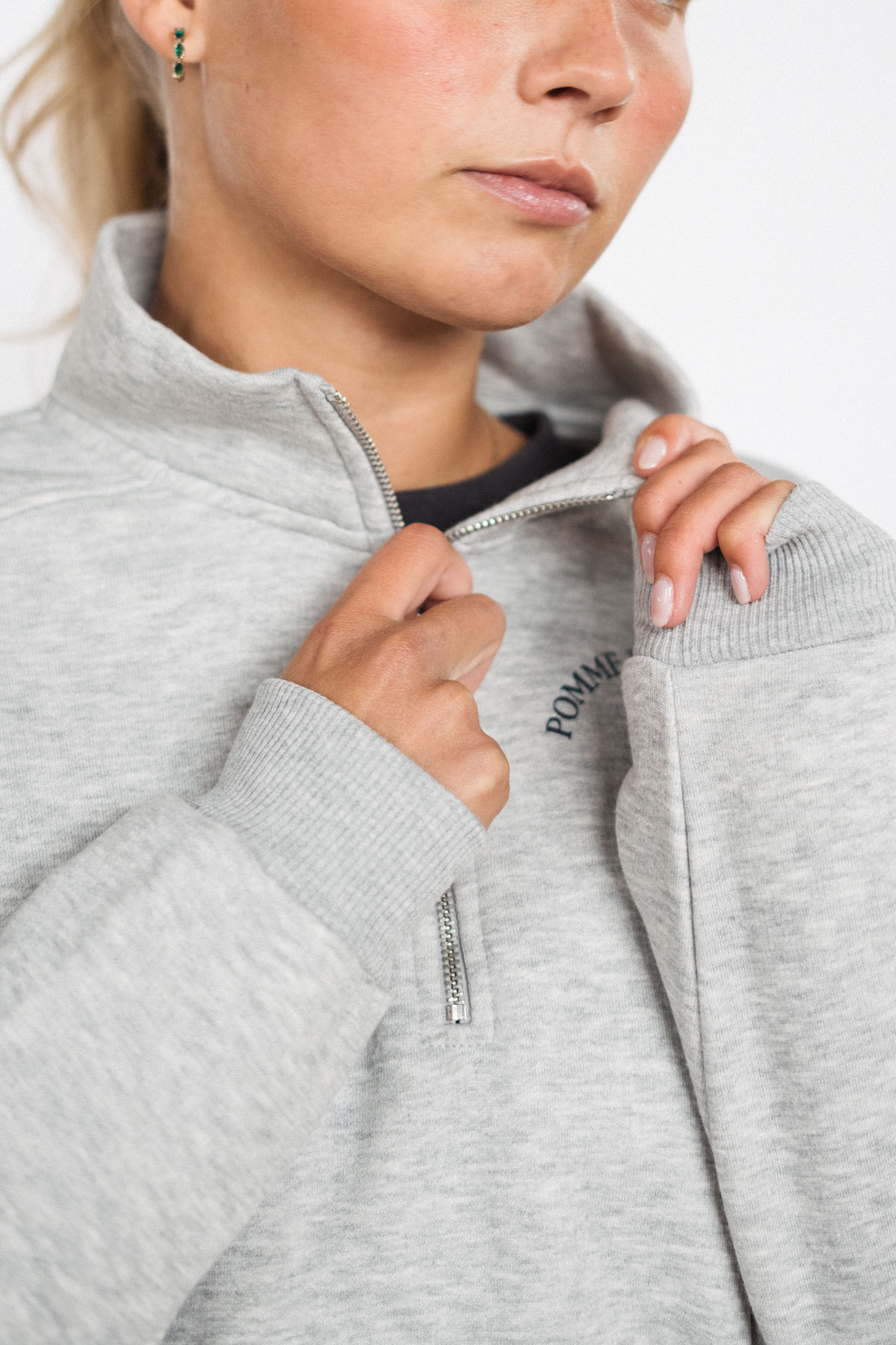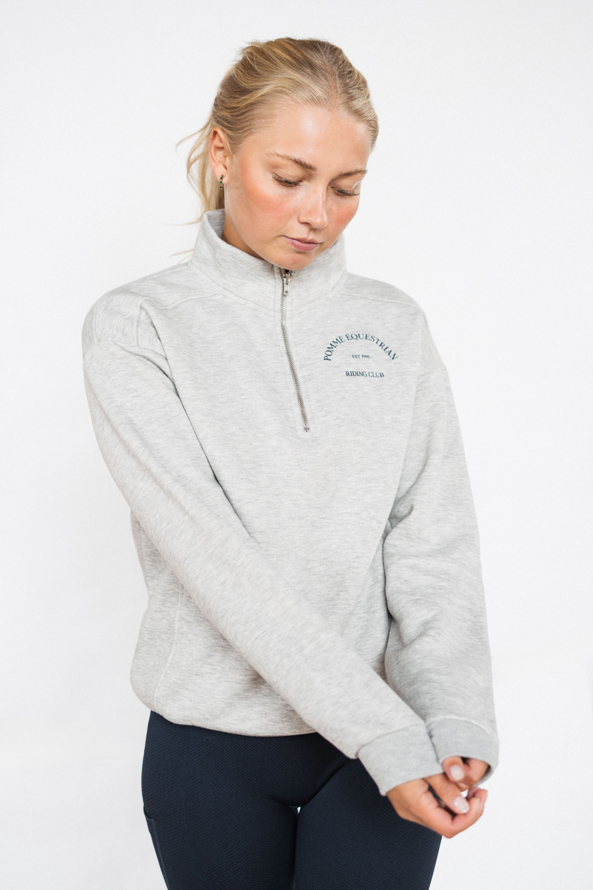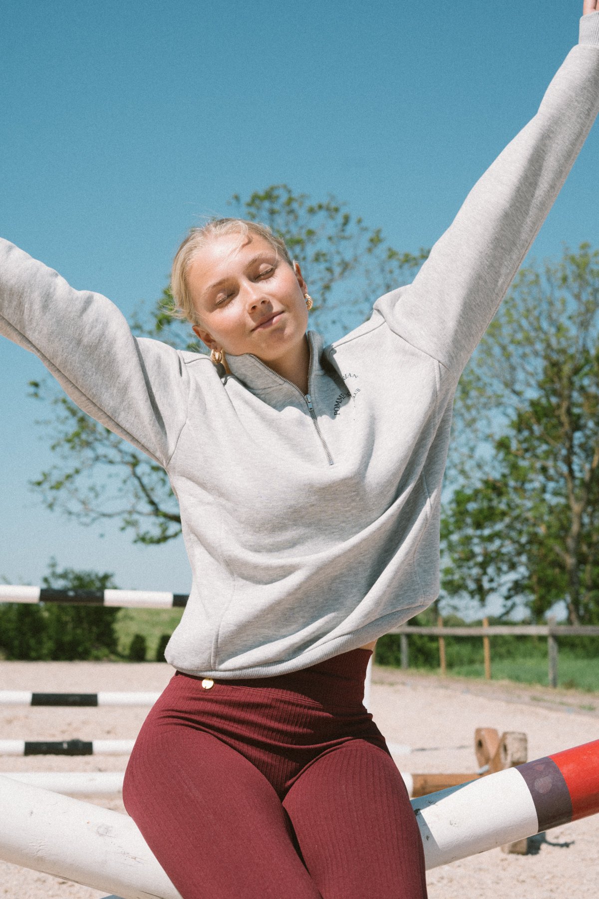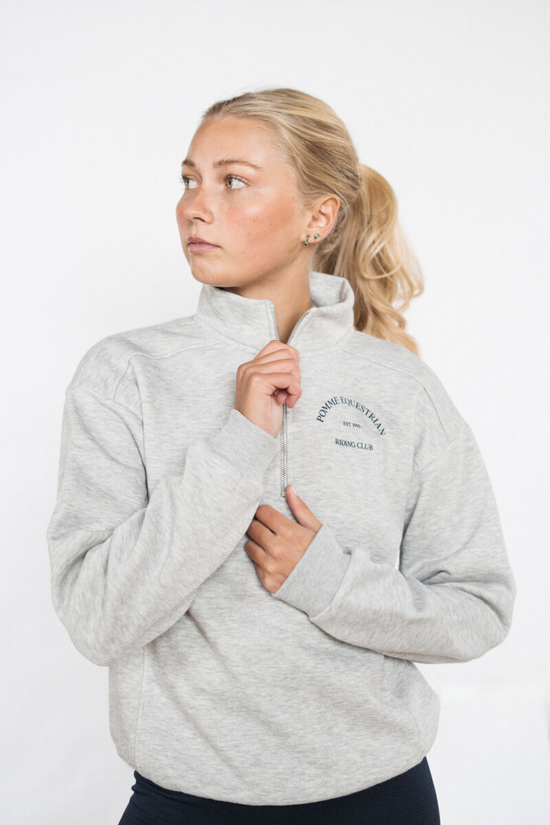 The perfect addition to your equestrian wardrobe: Pomme Club Crewneck with half zipper. Crafted for comfort and practicality, this crewneck is a cozy essential for riders.