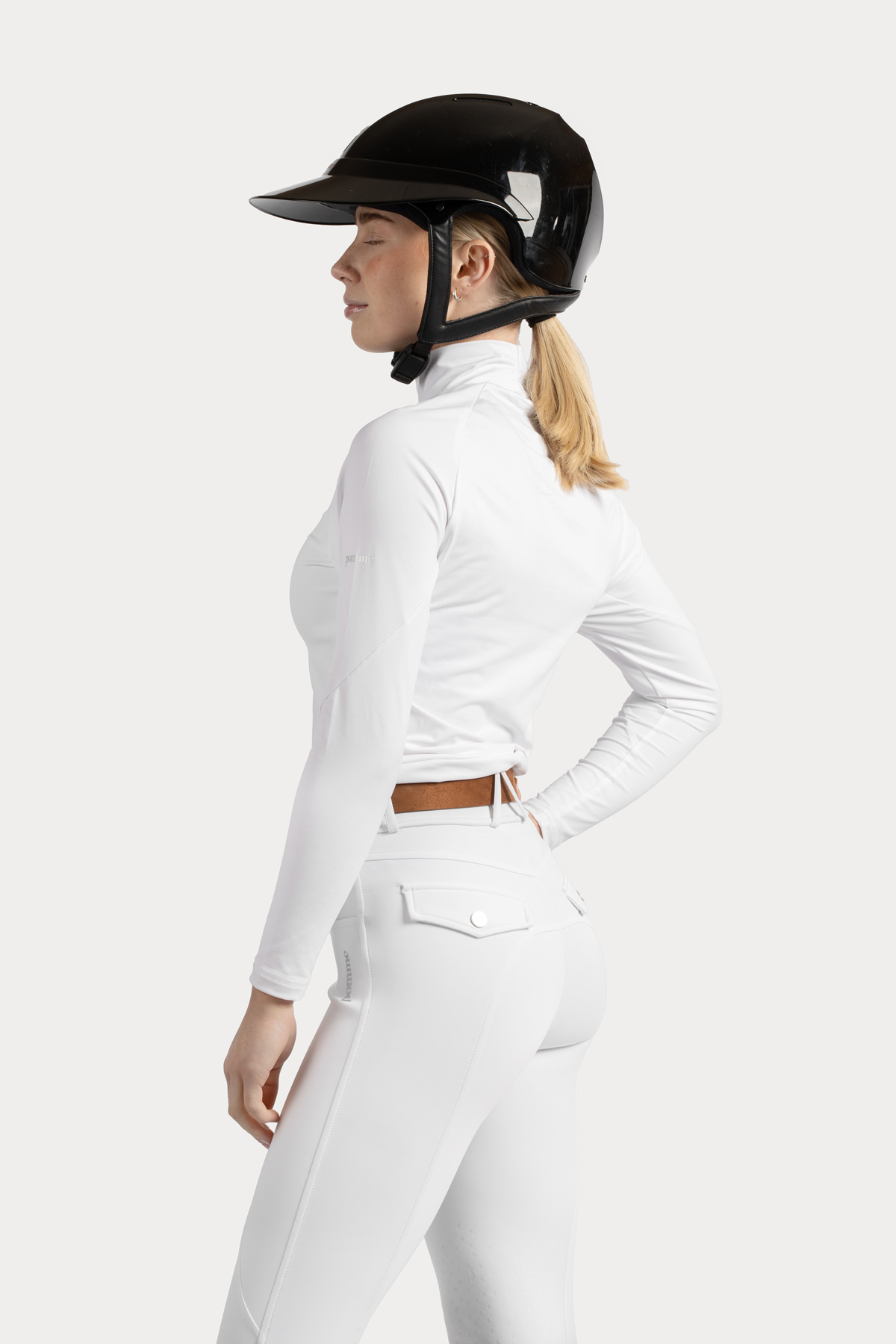 This fitted top is designed to pair perfectly with the Pomme Fay Breeches, creating a streamlined, athletic look. Its lightweight and flexible fabric allow for unrestricted movement, making it a reliable choice for riders who want both comfort and style.