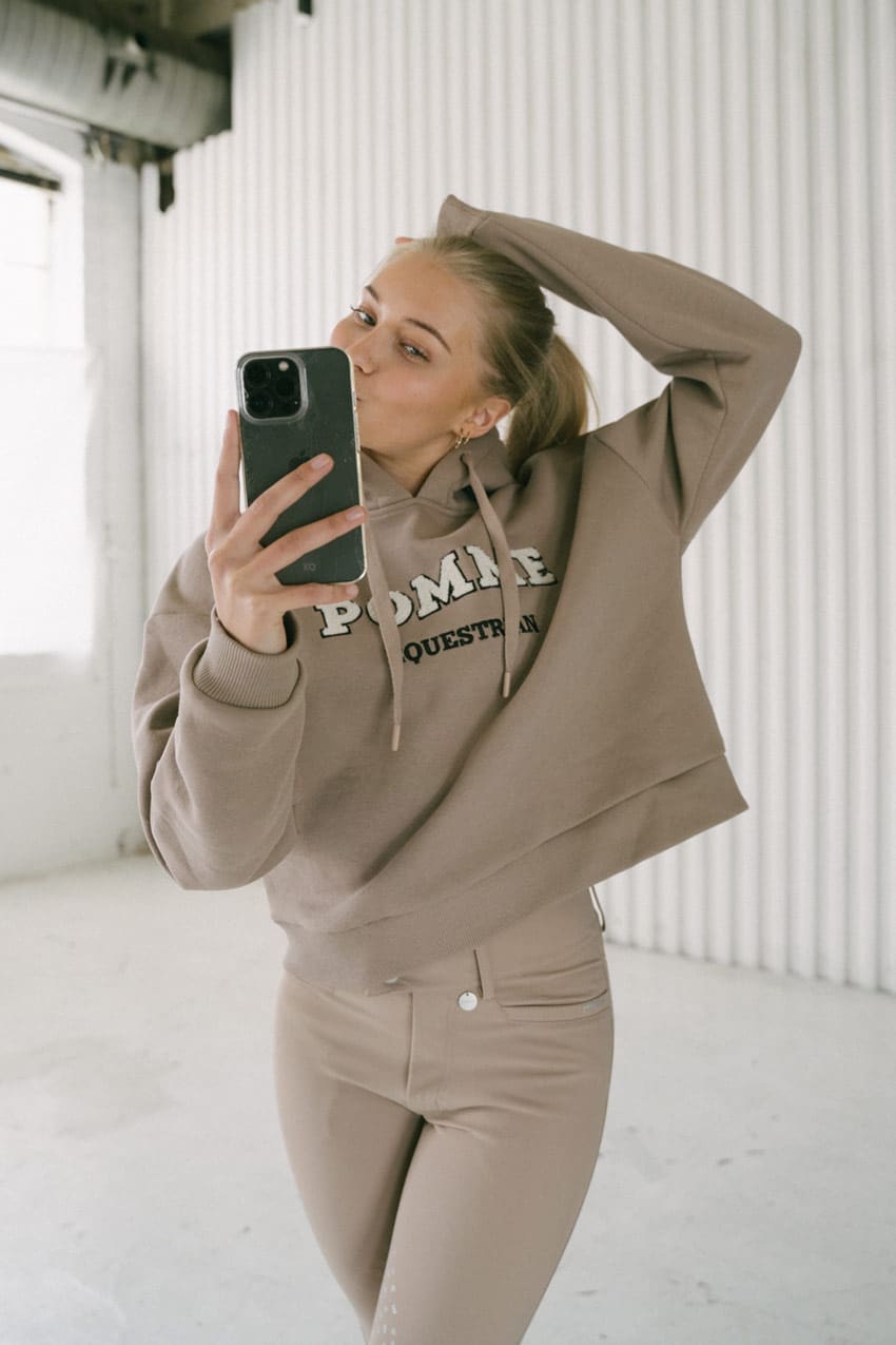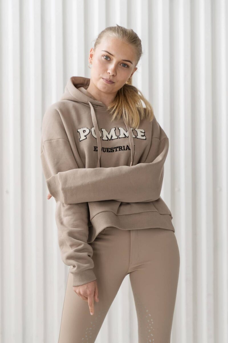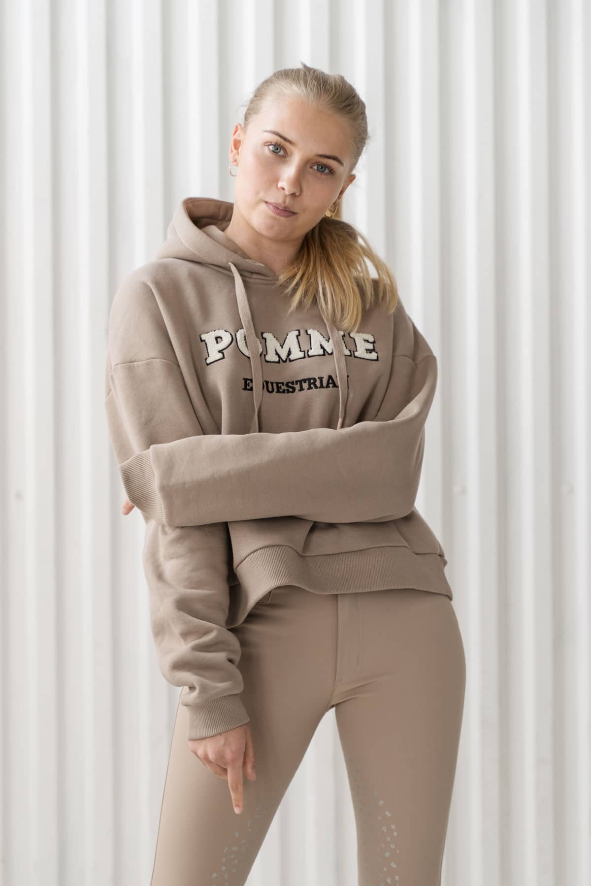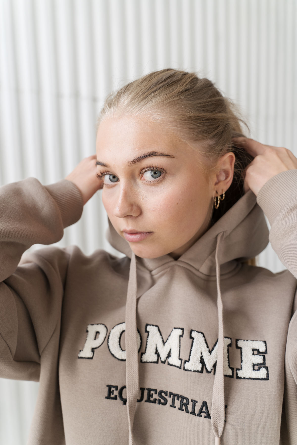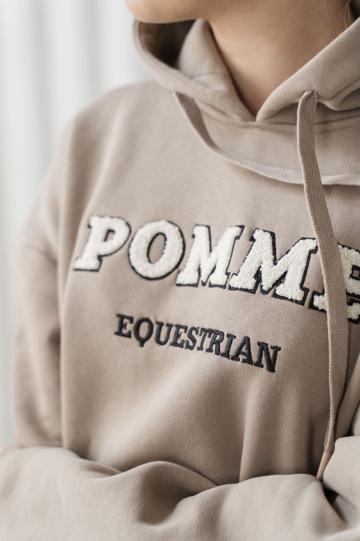 Pomme Juno Hoodie—an comfy, modern, and effortlessly cool addition to your equestrian wardrobe. Features the Pomme logo in teddy texture at the front and a big hood.