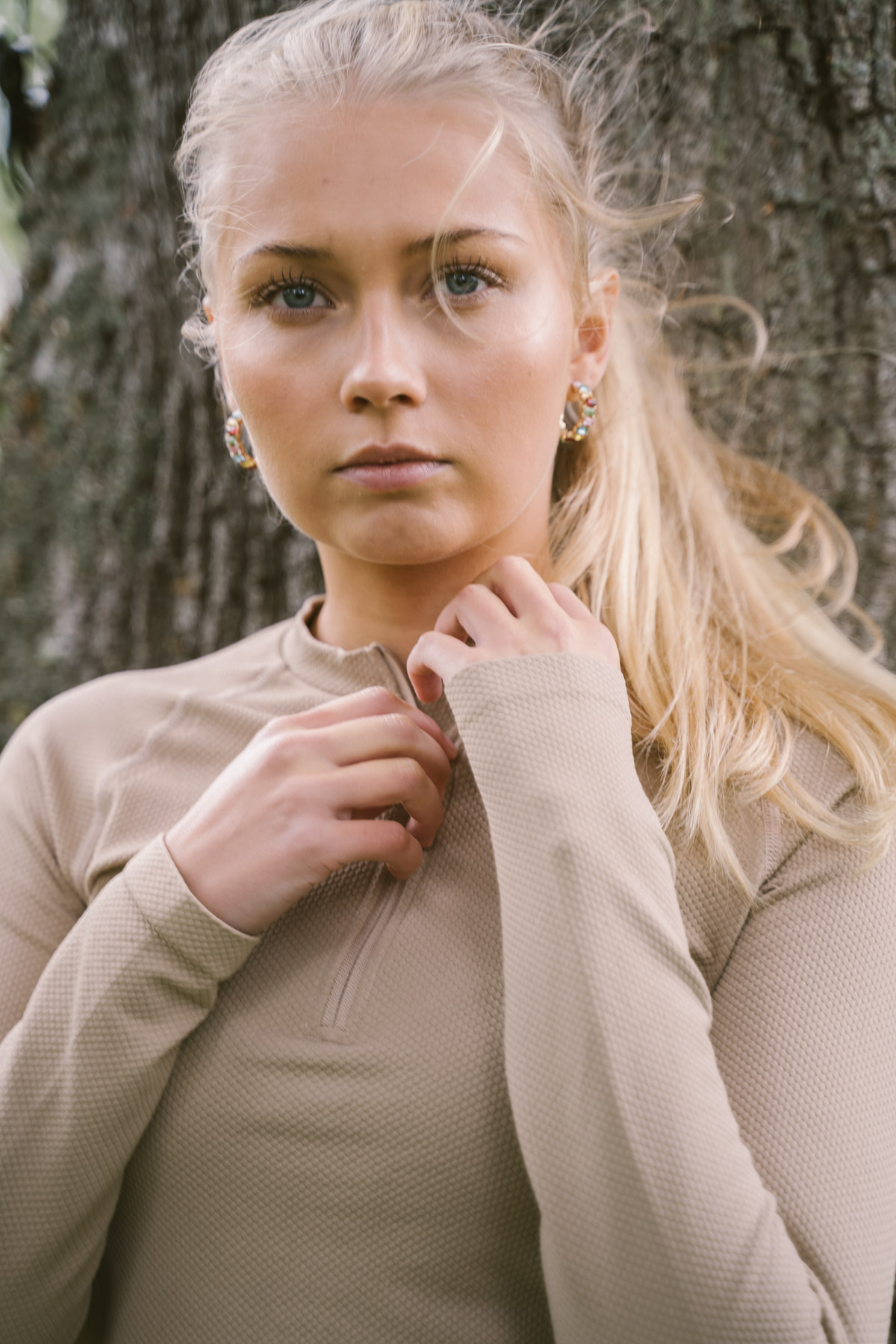 The blond model in the images is 166 cm and uses x-small.