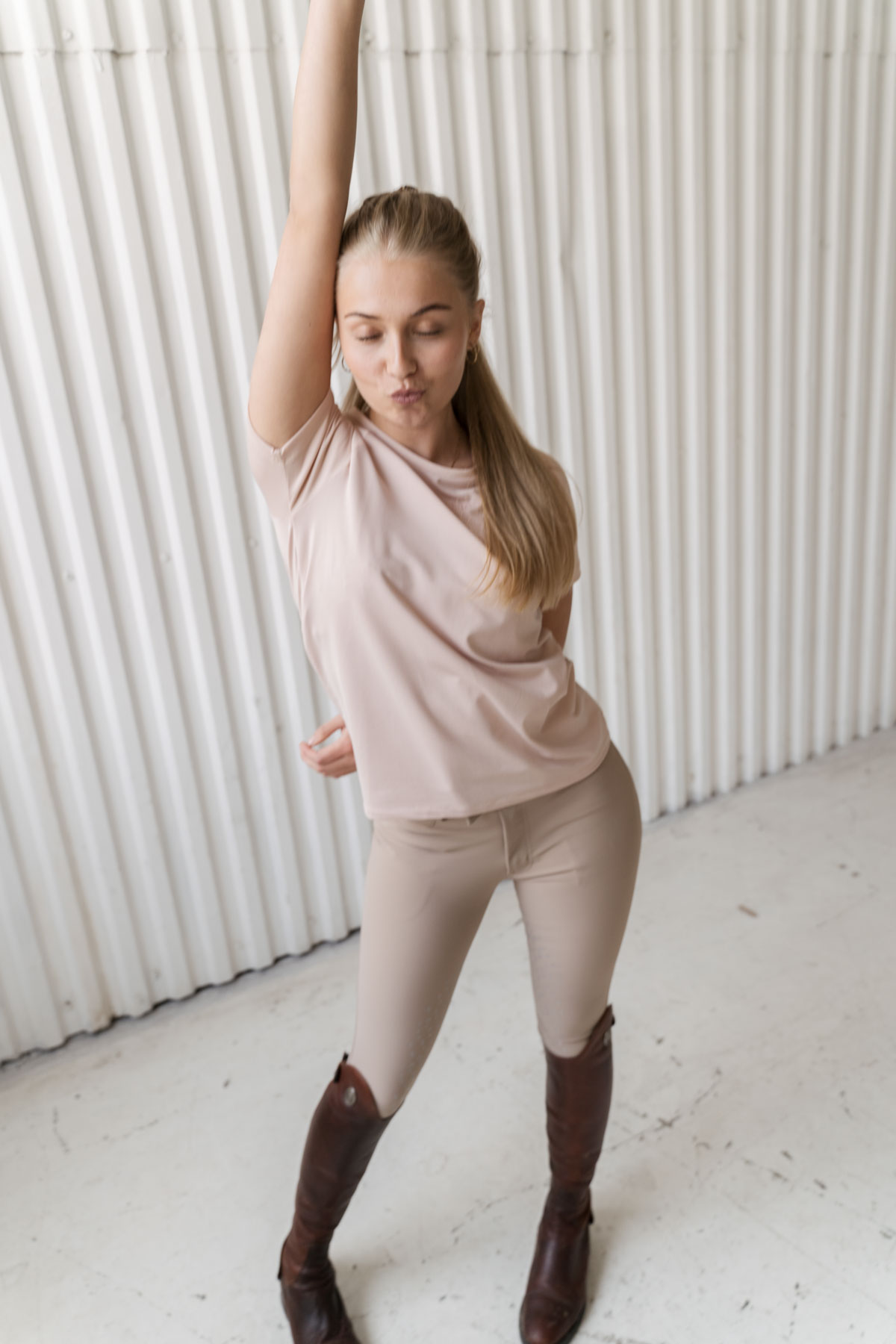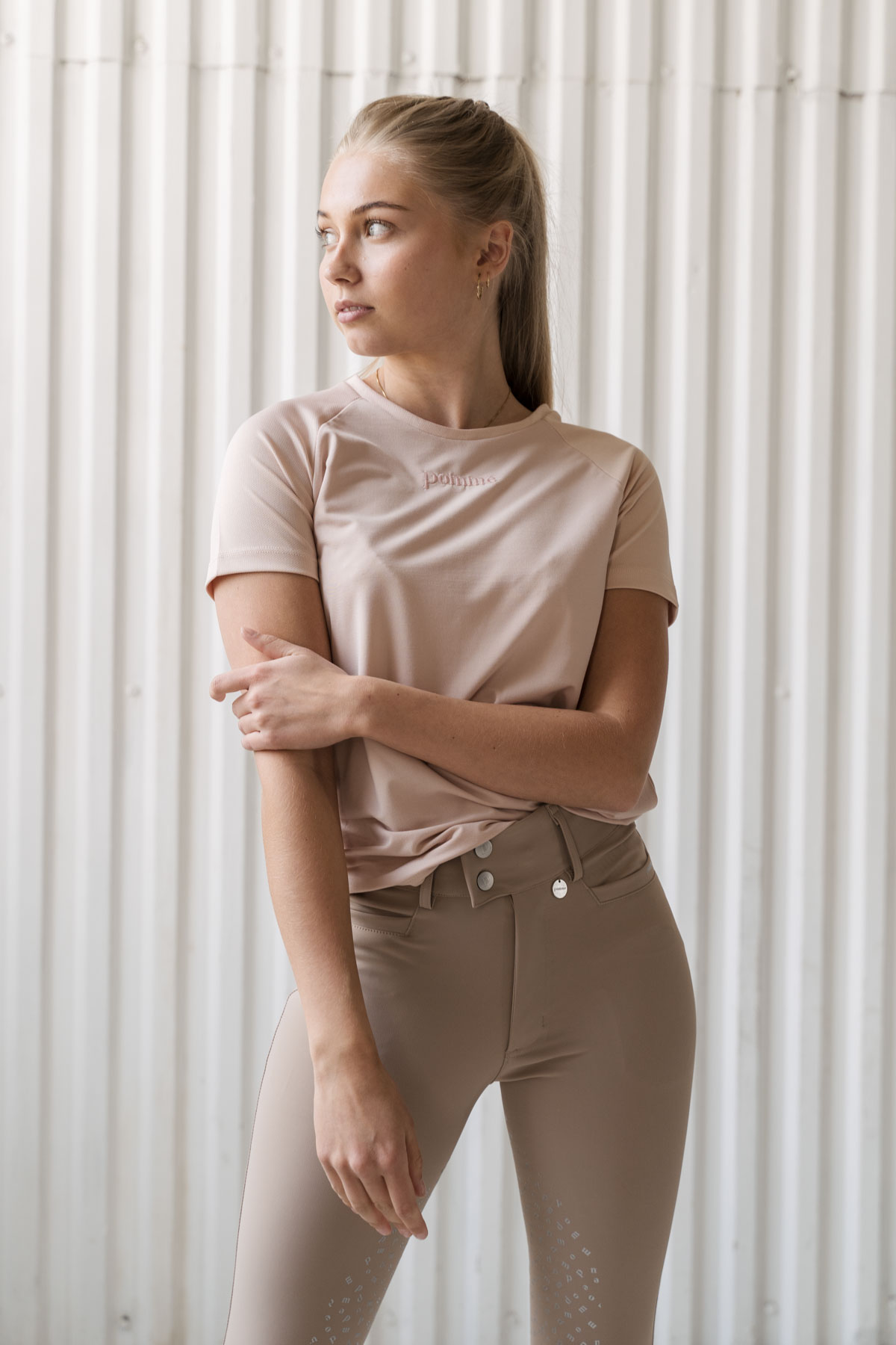 The blond model in the images is 166 cm and uses x-small.